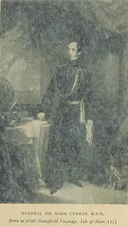 - ^ a b c d Harrison, Rev. S. N. (1885). Moore, A.W. (ed.). "Manx Worthies (No II): General Sir Mark Cubbon, K.C.B." The Manx Note Book. 1 (2). Douglas: G.H.Johnson: 51–54.