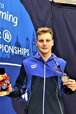 At the 2017 World Championships in Mexico, at 17 years of age, he won a bronze medal in the 100-meter backstroke.[10] At the 2018 European Championships in Dublin he won the silver medal in the 400-meter freestyle, and bronze medals in both the 100-meter breaststroke and the 100-meter backstroke.[10] At the 2019 World Championships in London, he won the gold medal in the 400-meter freestyle (setting a new world record of 4:33.64), and the silver medal in the 200-meter individual medley.[10]