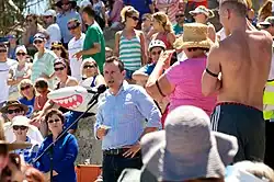 At the 2001 election, Labor defeated the Liberal–National Government; new Premier Geoff Gallop chose to appoint McGowan as his Parliamentary Secretary.[6] McGowan was also responsible for chairing the state's ANZAC Committee, the group managing the Western Australia's 175th anniversary celebrations in 2004, and for chairing the Bali Memorial Steering Committee.[7] In January 2005, following the retirement of federal Labor Leader Mark Latham from politics, McGowan was criticised in some quarters for taking unapproved leave to travel to Sydney to lobby for Kim Beazley's return to the federal leadership; Gallop reprimanded McGowan and ordered him to return to Perth.[8]