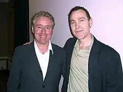 Throughout the 90s and early 00s, Millar was close friends with fellow Scottish writer Grant Morrison.[167] The pair frequently collaborated on works published by British and American publishers and appeared together at various events.[16][53] Morrison was seen as the mentor figure in their relationship,[30][168][169] as evidenced by a humorous strip created by Garth Ennis and Dave Gibbons for an anniversary issue of 2000 AD in which Millar appeared in the form of a small droid repeating a single phrase, "me and Gwant".[170] The pair was also parodied in an issue of Simpsons Comics written by Gail Simone, shown fighting over whose then-ongoing X-Men series—Millar's Ultimate or Morrison's New—is more important.[171] Sometime around 2004, Millar and Morrison seemingly cut all communication and never interacted in public again, which, according to Morrison, happened because Millar wanted to break away from the image of Morrison's protégé after the success he had with The Authority and Ultimate X-Men.[172] When asked about the state of their relationship in a 2011 interview, Morrison responded thus, "I wish him well but, no, there is no good feeling between myself and Mark Millar for many reasons most of which are he destroyed my faith in human fucking nature."[173]