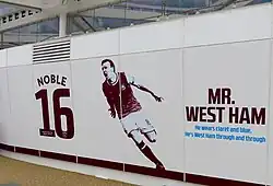 Noble has the most Premier League appearances for West Ham, in addition to being the longest serving player in the squad at the time of his retirement, having been in the first team since 2004. He won the club's Hammer of the Year trophy twice, as well as being voted Hammer of the Decade at the end of the 2010s.[6]