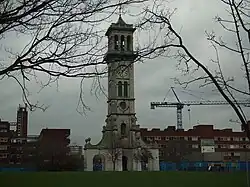Market Estate is a public housing estate consisting of 271 flats and maisonettes situated to the north of Caledonian Park in the London Borough of Islington. It is named after the Metropolitan Cattle Market which operated on the site until the 1960s. After slaughter the carcasses of cattle and sheep were sent by underground trains to Smithfield Market to be traded. Three of the six blocks that make up the estate are named after breeds of animal that were traded in the market: Tamworth (pigs), Kerry (cows) and Southdown (sheep). The remaining three blocks are called the Clock tower blocks after the market's clock tower which still stands in Caledonian Park. This contains a working clock used as a prototype for the mechanism of Big Ben.