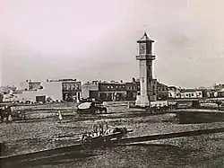 A clock tower was built in the centre of the square in 1856.[1] It was the idea of the second Mayor of Geelong James Austin, who offered to pay for a clock tower in Geelong to mark his term as mayor.