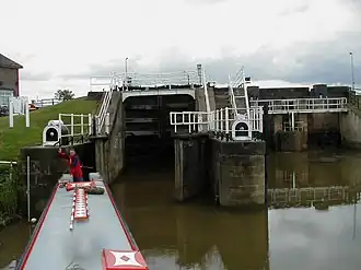 The lower section of the canal, including Weighton Lock, (also called Humber Lock), which provides access to the Humber Estuary, was abandoned in 1971,[5] but when they heard that the lock was likely to be demolished, the Market Weighton Civic Trust moved quickly to have the whole structure listed as an ancient monument[6] and their action, together with public pressure resulted in the lock being repaired and reopened.[5] Further repairs and an overhaul of the structure were carried out in 1994 by the National Rivers Authority at a cost of £1.5 million,[2] and although there is no public right of navigation on the waterway, access is possible by arrangement with the Environment Agency, who currently own it.[5]