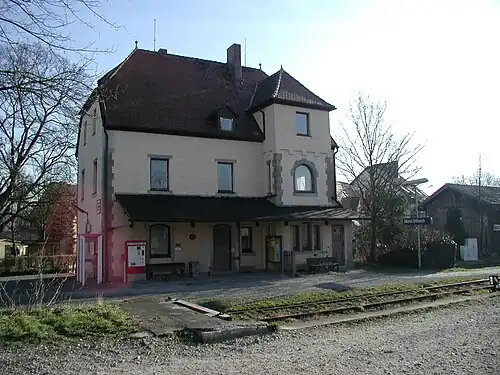 Markt Erlbach station is a railway station in the municipality of Markt Erlbach, located in the district of Neustadt (Aisch)-Bad Windsheim in Middle Franconia, Germany.