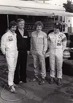 Höttinger started his motor sport career with an internship at Mercedes-Benz in 1975, while on a break from studying at university. He subsequently bought a Ford and entered local club races. He graduated to the Austrian Renault 5 Cup, winning in his second season in 1977.[2] He met established Austrian racer Helmut Marko, who helped Höttinger on his way through the lower categories of the sport.[3] Via Marko, Höttinger was given a drive by BMW team principal Jochen Neerpasch in the 1977 Kyalami 1000kms alongside Harald Grohs, and the pair finished third.[4]