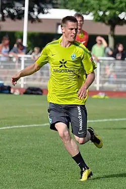 Nils Markus Rosenberg (Swedish pronunciation: [ˈmǎrːkɵs ˈrûːsɛnˌbærj]; born 27 September 1982) is a Swedish former professional footballer who played as a forward. He spent the majority of his career with his boyhood club Malmö FF, as well as a notable five-year stint with German Bundesliga side Werder Bremen. Rosenberg served as captain of Malmö from 2015 to 2019. Rosenberg won 33 caps for the Sweden national team, scoring 6 goals, and represented them at the 2006 FIFA World Cup, UEFA Euro 2008, and UEFA Euro 2012.[3][4]