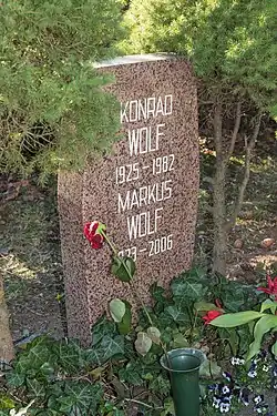 Markus Wolf died in his sleep at his Berlin home on 9 November 2006.[23] He was cremated and buried in his brother's grave in the Pergolenweg Ehrengrab section of Berlin's Friedrichsfelde Cemetery.
