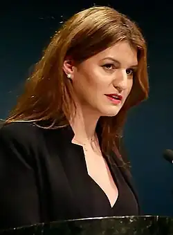 Marlène Schiappa (French pronunciation: [maʁlɛn ʃjapa]; born 18 November 1982) is a French writer and politician who served as State Secretary for the Social and Solidarity Economy and Associative Life, attached to the Prime Minister, in the Borne government (2022–2023), as Minister Delegate in charge of Citizenship, attached to the Minister of the Interior, in the government of Prime Minister Jean Castex (2020–2022)[1] and as Secretary of State for Gender Equality in the government of Prime Minister Édouard Philippe (2017–2020).[2]
