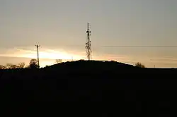 The summit of the high ground between the Tyne, Derwent and Team valleys is to the West of the village, about halfway between Byermoor and Marley Hill itself and is surmounted by an outcrop known as Blackamoor Hill. This area is known as High Marley Hill. It consists of three cottages beside the road, a large house which is accessed via School House Lane, Longfield Farm, a pallet works which occupies the former High Marley Hill School buildings, and several buildings surrounding a large radio antenna currently operated by Arquiva. This sits on top of Blackamoor Hill, from where it is able to broadcast signals across a considerable area (from the rear of Cuthbert Street on a clear day it is possible to see as far as the mouth of the Tyne, and as far North as the RAF's radar station at Brizlee Wood near Alnwick, and from ground level at High Marley Hill the visible area stretches into the North Pennines and East as far as Penshaw Hill near Sunderland). The existing mast replaced an earlier 140 foot mast that was part of the network known as the Medium Frequency Regional Scheme that provided police radio broadcasts between the early 1940s and '50s and covered the area between North Yorkshire and the Scottish border. This was decommissioned when the more modern system using two-way radios was introduced. In early 1942 a Hawker Hurricane crashed in poor weather into an orchard across the road from mast, killing its Royal Canadian Air Force pilot, 24 year old Sergeant James D'Arcy Lees Graham. There is a plaque commemorating the incident in the community centre.