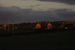 The village consists of several rows of terraced houses, along with a number of detached and semi-detached properties. The oldest existing properties are the former vicarage, the school house, three large detached houses on St. Cuthbert's Road, two stone-built cottages (accessed by a lane leading off to the north-east from St. Cuthbert's Road) and the five rows of houses which form Glamis Terrace, Cuthbert Street and Church Street. The majority of the properties on Cuthbert Street and Church street were built as two up-two downs, and at one time had outside toilets and tin baths which would have been placed in front of the fire. During the 1960s, the houses were modernised and had indoor bathroom/toilets installed. Some of the outside toilets with their adjoining coal houses remain, but a number have been demolished, or have had the toilet removed and are used as sheds. The houses on Glamis Terrace were intended for colliery officials, and are therefore fewer in number and considerably larger than the others, with gardens at both the front and rear. It is named Glamis because the Bowes-Lyons, the Earls of Strathmore, who were ancestors of the Queen (Glamis Castle was the childhood home of the Queen Mother) owned the colliery and the surrounding land, including the Gibside estate. Church Street and Cuthbert Street are named after St. Cuthbert's Church,[1] which stands at the corner of St. Cuthbert's Road, opposite the former Miners Welfare Institute (now a community centre housing a nursery and a performing arts school)[2] and the aged miner's cottages.