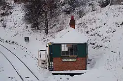 The majority of the houses in this area were very basic, and were in an extremely poor condition by the time they were demolished. Some were of a similar design to the houses in the pit village[5] at the nearby Beamish Museum,[6] and others were built as back-to-backs, a type common in Yorkshire (large numbers remain in Leeds), Lancashire and the Midlands but rarely seen in the north-east. The Bowes Railway ran through a cutting east of the signal box, and the Stanley road crossed it on a bridge. After the closure of the line, this bridge was no longer necessary, and the cutting was backfilled, although the western end of it is still visible adjacent to the box, forming the headshunt of the shed yard. There was also another colliery in this area; [ Andrews House Colliery,[7] which was served by a spur from the Bowes Railway, part of which is still in existence. This is the section of track which crosses the entrance to the shed yard and passes behind the shed, beneath the former coal drops, and continues a short distance to the rear of the site.