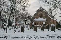 The newer properties in the village are those in the St. Cuthbert's Park estate and Sandygate Mews, which are accessed from St. Cuthbert's road. St. Cuthbert's Park consists of a mixture of detached and semi-detached properties, and was built in the 1990s, as was Sandygate Mews. Sandygate Mews consists of five large detached properties built on the site of a former market garden. These, along with the vicarage and The Grange, which stands across St. Cuthbert's Road from the church, are some of the largest houses in the village. The former church hall opposite the entrance to Sandygate Mews has also been converted into a house, and there are another two large properties just to the south of the school. One of these is relatively new, while the other one, Redlands, appears on the 1921 OS map. A building marked "mission room" on the site of the church hall also appears on this map. The building which presently occupies the site does not appear to be old enough to have been built before 1921, but was presumably built to replace an earlier structure of similar dimensions. After falling into disuse, the hall stood empty for a number of years, before finally being bought by a property developer. Although the general outline of the structure has not been altered, its conversion into a home has otherwise rendered it considerably different in appearance.