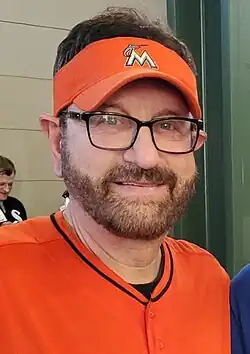Laurence Leavy (born October 13, 1956), better known as Marlins Man, is an American sports fan and lawyer from North Miami Beach, Florida. He gained “fame” in 2012 for his frequent appearances at major sporting events while wearing orange Miami Marlins apparel. His seating placement in view of broadcast cameras has drawn attention at the World Series, Super Bowl, NBA Finals, Kentucky Derby, Stanley Cup Finals, College World Series, and other events.[1] Leavy has been described by USA Today as a "ubiquitous superfan".[2]