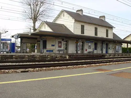Marolles-en-Hurepoix is a railway station in Marolles-en-Hurepoix, Essonne, Paris, France. The station was opened in 1843 and is on the Paris–Bordeaux railway. The station is served by Paris' express suburban rail system, the RER. The train services are operated by SNCF.