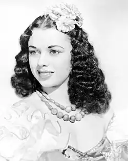 Rivera put together her own show and performed at the Latin Quarter (nightclub) and Havana-Madrid in New York. She was a marquee name back in her homeland where she entertained at venues such as Zero's Nightclub and El San Juan Theatre. In the mid-1940s Rivera was signed by Azteca Studios in Mexico City. She acted for director Fernando Soler in Me persigue una mujer (1947) with Jose Torvay and David Silva, and in the comedy El Conquistador (1947), starring Torvay and Enrique Herrera.[4][6] After her contract ended at Azteca, Rivera went on to sign a Hollywood contract with Paramount Pictures, and made her American movie debut as lead singer and specialty performer in the Bob Hope-Bing Crosby comedy The Road to Rio (1947).[7] Although Rivera was selected in a popularity poll by Mexican filmgoers to star in an independent film biography of the late "Mexican spitfire" Lupe Vélez, the film was shelved when legal issues arose involving Vélez's estate.[8][9][3]