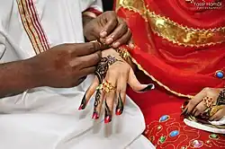 Marriage is considered a fundamental social institution in Sudan, and it is highly valued in Sudanese culture. The majority of Sudanese people are Muslims, and Islamic law governs marriage and family matters. Under Islamic law, marriage is a contract between two parties, based on mutual consent between the groom and the bride's guardian (wali).[1] The marriage contract is regulated by the Personal Status Law of 1991.[2][3][4] The law sets the legal age of marriage to 18 for boys and 16 for girls,[5] and support polygyny.[2]