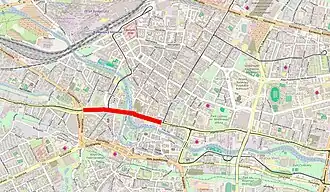 Located in the center of Bydgoszcz, the street stretches east–west from the intersection with Gdańska Street to Grunwaldska roundabout. It is approximately 1.1 kilometres (0.68 mi) long. To the west, it joins with Nakielska street, and with Jagiellońska street to the east.