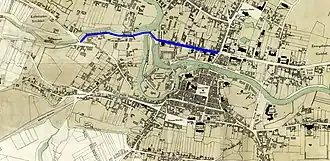 In the second half of the 19th century, the eastern tip of the street connected with the new administrative center of the city, with the erection in 1836 of the Governmental seat of the Prussian region on Jagiellońska street. In Focha street were built in the 1860s tenements for local garrison personnel.[3] Real estate cadastral files of Bromberg from 1878 reveals that a southern frontage of houses stood in the area from Theatre square to the Opera Nova. On the northern bank of the Brda river stood a military casino (from 1869) on the corner of the street. The villa of the president of the Prussian region was located at the level of today's Nr.25, together with garrison lodgings: in the same area was standing lock Nr.2 - Polish: Śluza II „Grottgera”- on the old Bydgoszcz Canal (now the plot at the intersection with Grottger Street). The area in the bend of the Brda was occupied by military buildings, including the city's largest granaries, the Royal Granaries. To the west of lock Nr.2, the axis was called Channel street (German: Canal Strasse), and winded along the Bydgoszcz Canal. At the level of today's Higher School of Economics was standing a bridge crossing the canal over lock Nr.2.[1]