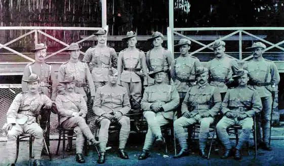 In early 1900, under Ridley's 4th Mounted Infantry Brigade, the Unit joined the British advance from the Modder River to Bloemfontein. This march included the Battle of Poplar Grove on 7 March in which Lieutenant Freislich was killed. A few weeks later, the Unit participated in an action at Thaba Nchu under General Ian Hamilton an event related in Winston Churchill's Ian Hamilton's March. Churchill observed "...our loses in this smart action were about twenty killed and wounded, among whom were no less than 5 officers" of Marshall's Horse.[3] They also fought at Israel's Poort on 25 April 1900. Captain Gethin (pictured below) was killed that day. Marshall himself was wounded, to be replaced as Commanding Officer by Captain Corbett (Somersetshire Light Infantry).[4] Lord Roberts mentioned their performance in his dispatches.