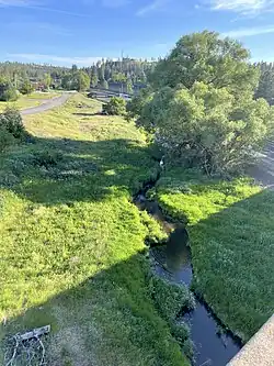 The main stem of the creek begins in the channeled scablands just northeast of Turnbull National Wildlife Refuge in rural southeastern Spokane County, approximately three miles southeasteast of Cheney, at an elevation of roughly 2,300 feet above sea level.[3][4] The stream flows in a northeasterly direction from there into the city of Spokane where it enters Latah Creek at approximately 1,800 feet above sea level.[2]