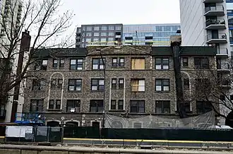 The Marshall Hotel is a historic residential hotel located at 1232 N. LaSalle Street in the Near North Side neighborhood of Chicago, Illinois. Built in 1927, the hotel was one of several residential hotels built to house an influx of workers to Chicago in the 1920s. While the hotel offered rooms to both temporary and permanent residents, census records indicate that most of its residents were permanent. Architect Edmund Meles, who designed several hotels and apartment buildings in Chicago in the 1920s, designed the building in a mix of the Classical Revival and Renaissance Revival styles. The building has a brick exterior and features a limestone arched entrance, arched lintels with keystones around the first-floor windows, limestone quoins, and a pediment with an urn.[2]