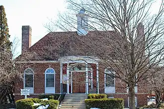 Marshall Memorial Hall is a historic building at 30 Wisconsin Dells Parkway South in Lake Delton, Wisconsin. The town of Delton had the building constructed in 1928 to serve as a government office building, community center, and town library. Roujet D. Marshall, an early Delton resident and justice on the Wisconsin Supreme Court, bequeathed the money for the building, and it was named in his honor. Architect Edward Tough of Madison designed the Georgian Revival building. The one-story brick building's design includes a rounded entrance portico supported by Tuscan columns, arched double-hung windows, and a hip roof with an octagonal lantern and two brick chimneys. The building continues to house town offices and is one of the few surviving buildings in Lake Delton that predates the commercial development of the Wisconsin Dells area as a major tourist destination.[2]
