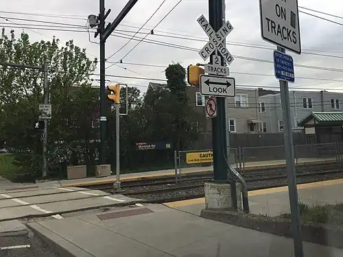 Marshall Road station is a stop on the D in Drexel Hill, Pennsylvania. It is between Cheswold and Blanchard Roads on Marshall Road.[1]