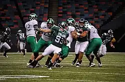 The Marshall Thundering Herd is the intercollegiate athletic collection of teams that collectively represent the Marshall University in Huntington, West Virginia. Thundering Herd athletic teams compete in the Sun Belt Conference, which are members of the NCAA Division I.[4] The school's official colors are kelly green and white.[5] The Marshall Thundering Herd have won 3 NCAA national championships and one NAIA national championship.