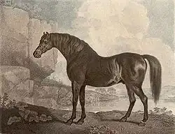 Marske stood at the Duke's Cumberland stud until his owner died in 1765. Being a rather average horse up to that point, he was then sold at Tattersall's to a Dorset farmer for a 'trifling sum'. At the farm, he covered mares for half a guinea.[2] The farmer then sold him for only 20 guineas to William Wildman. He covered mares at Bisterne, Hampshire, for 3gs and 5s in 1767, 5gs and 5s in 1769 and 10gs and 5s in 1770 before his fee was raised to 30gs and 5s.[2] However it wasn't until his greatest son, Eclipse, showed talent on the track that Marske became extremely popular. He was then sold for a large profit of 1,000 guineas to Willoughby Bertie, 4th Earl of Abingdon, who raised his stud fee to 100 guineas (equivalent to £17,400 in 2023). During his 22 years at the Earl's stud in Rycote, Oxfordshire, Marske sired across the next generation 154 winners.[3] Top offspring include: