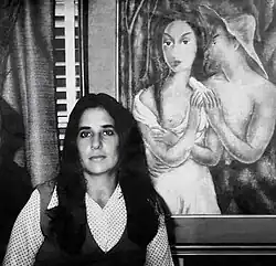 ![]() Marta Permuy, c. 1973, in Permuy Gallery. On the right, an oil painting by Victor Manuel. | |