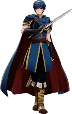 Marth was redesigned for Fire Emblem: Mystery of the Emblem by the game's character artist Katsuyoshi Koya.[13] For the first game's remake, Fire Emblem: Shadow Dragon, Marth underwent a redesign. The staff's main aim for the redesign was to make the character look and feel fresh while not straying too far from what fans had come to expect.[14] His redesign was handled by Ghost in the Shell artist Masamune Shirow.[15] He was redesigned once again for the third game's remake, New Mystery of the Emblem, by Daisuke Izuka.[16] Marth's design for his appearance in downloadable content for Fire Emblem Awakening was by Senri Kita, the character artist for Fire Emblem: Radiant Dawn. This, along with other character redesigns featured in the game's DLC, was dubbed an "underworld" design.[17] When designing Marth for Fire Emblem Warriors, the designers took input from female staff members involved in the game's development in order to make him more appealing to women. Director Usuda Hiroya noted that he was portrayed as a gentle character in Fire Emblem Awakening and Fire Emblem Fates, but adjusted his face and appearance to make him more manly. An interviewer remarked that male fans of the series viewed him as boyish.[18] When adding past characters to Fire Emblem Engage, the designers decided to include Marth first due to him being the first protagonist in the series.[19]