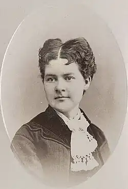 Martha Maria Hughes Cannon was born near Llandudno, Caernarfonshire, Wales on July 1, 1857, the daughter of Peter Hughes and Elizabeth Evans. She was known by the nickname "Mattie".[3] The Hughes family were converts to the LDS Church and emigrated to the United States with their two daughters, Mary Elizabeth and Martha Maria. They embarked from Liverpool, England on March 30, 1860, on the ship Underwriter and arrived in New York City, New York on May 1, 1860. Peter was very sick at the time and Elizabeth gave birth to their third child, Annie Lloyd. They stayed in New York to earn money to travel the plains to Utah territory. Erastus Snow, a church leader, invited the family to join a pioneer company funded by the LDS Church for the less fortunate. The family accepted the invitation and traveled by train to Florence, Nebraska, and left with the Joseph Horne company on July 11, 1861. Shortly before the family's arrival in the Salt Lake Valley, on September 3, 1861, Martha's sister, Annie Lloyd Hughes, died and was buried in an unmarked grave. She was 21 months old. The Joseph Horne company arrived in the Salt Lake valley on September 13, 1861. Three days after they arrived in Salt Lake City, on September 17, 1861, Peter Hughes died. Elizabeth Hughes was left a widow with two young daughters at the age of 28.[1]: 4–8 Thirteen months later, Elizabeth married James Patten Paul, a widower with four sons, and they were the parents of university professor and newspaper editor Joshua Hughes Paul.[4] After Elizabeth's marriage to James P. Paul, Martha, at different times in her life, went by the surnames of both Paul and Hughes. Later in life, Paul encouraged Martha to follow her dream of becoming a medical doctor.[1]: 9–12