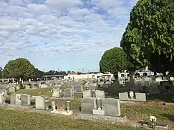 In 1895, the City of West Tampa purchased land to be used as a city-run cemetery to serve the community.[2] It was the final resting place of prominent West Tampans such as the second mayor of West Tampa, Francisco Milian.[3] At some point, the cemetery moved into private hands, being owned and operated by J. L. Reed until 1936, when it was sold to the City of Tampa, so that the city could in turn sell right-of-way permissions through the cemetery for the expansion of Columbus Drive. The right-of-way separated the cemetery into northern and southern halves, apparently leaving several hundred bodies in the northern section.