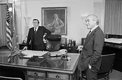 Historian William Manchester wrote that shortly after the shooting, Agronsky telephoned Ted Kennedy to ask if he would be flying from D.C. to Dallas, one of limited communications Ted Kennedy received in the aftermath of his brother's assassination due to telephone lines overloading as people tried to call others to talk about the news.[67] Agronsky covered Kennedy's lying in state on the Today show. He noted that he had also covered the funeral of Franklin D. Roosevelt, describing the different mood by explaining that people mourning Kennedy seemed moved by his unfulfilled potential.[68] On November 27, 1963, five days after the assassination, Agronsky conducted an interview with Texas governor John Connally from his bedside in Parkland Memorial Hospital. Connally, to whom Agronsky was a good friend, had been riding in the seat ahead of Kennedy and was wounded.[69][70] As Connally recovered, the press were desperate to hear his story, but his aides deemed him too weak to face a conference. Instead, the combined press accepted the proposal to use a single reporter as a pool, with all networks carrying the interview live. Connally's office chose Agronsky to be their reporter; he was found in Arlington National Cemetery late the night before and took a midnight flight to Dallas.[71]