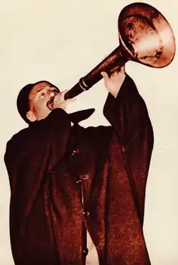 Between 1947 and 1952, he got a teaching assignment at Meldorfer Gelehrtenschule (founded in 1540) where he introduced his community theatre again.[58] There he named his fully developed play as Meldorfer Spielweise which he characterized as a special style of community theatre. From the start all participants are involved in the play's development. Actors, musicians, handcrafter and technicians are part of a team which composes, writes poetry and thinks about elements like dance, singing, period costumes, signs and symbolism, technical effects.[59] Along the way Luserke's most appreciated activities helped to save the school's survival which was endangered after WWII.[60]