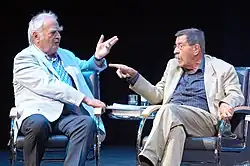 At first the speech caused no great stir; the audience received the speech with applause, though Ignatz Bubis, president of the Central Council of Jews in Germany, did not applaud, as confirmed by television footage of the event.[26] Some days after the event, and again on 9 November, the 60th anniversary of the Kristallnacht pogrom against German Jews, Bubis accused Walser of "intellectual arson" (geistige Brandstiftung)[1] and claimed that Walser's speech was both "trying to block out history or, respectively, to eliminate the remembrance" and pleading "for a culture of looking away and thinking away".[27] Then the controversy started. As described by Karsten Luttmer:[28] Walser replied by accusing Bubis to have stepped out of dialogue between people. Walser and Bubis met on 12 December[3] to discuss the heated controversy and settle the dispute.[1] Bubis withdrew his claim that Walser had been intentionally incendiary, and Walser maintained that his speech was unambiguous. They agreed that no appropriate language had yet been found to deal with Germany's past.[3]