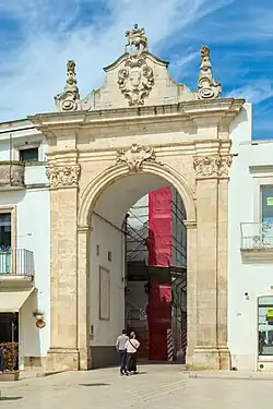 The town has a particularly conserved old town surrounded by stone walls with prominent Baroque gates leading to piazzas and narrow, winding streets. Piazza Roma is the largest square in the old town, with a green space in the centre of a largely triangular grass pattern, facing the 17th-century Palazzo Ducale.[8]
