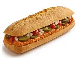| Main ingredients | Baguette, filet américain, pickles, onions, spicy condiments |
