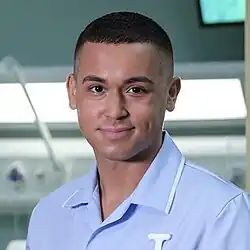 Jafargholi was invited to read for the part in early 2018, shortly after he concluded filming for his role as Shakil Kazemi at EastEnders. He had planned to have a break but upon reading the script for Casualty, he decided to read for the part.[3] He then went on holiday and upon his return, he learnt he had been offered the role. He then began filming in July 2018.[4] The actor commuted between Cardiff, where the show is filmed, and his home in London for the role.[5] While filming for the show, Jafargholi would stay in a hotel before returning to his home at the weekend. He did not mind doing this as he found the commute easy.[4] The actor is also Welsh and expressed his delight at working in Wales.[4] Jafargholi joined the cast alongside actress Gabriella Leon, who portrays Jade Lovall. She was pleased about this and dubbed him her "partner in crime".[6] He also liked this and thought it would have been scary to start alone, so he was pleased to work with Leon to start with.[5]