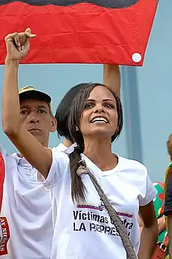 Marvinia Jiménez (1979) is a Venezuelan seamstress who was abused by members of the Venezuelan National Guard during the 2014 Venezuelan protests.[2] Following the incident, Jiménez became an activist, calling for changes to be performed by the Venezuelan government.[1] She also became a target of violence by Venezuelan authorities due to the popularity of her case.[3]