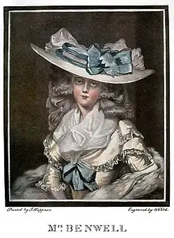 Benwell resided in Warwick Court, London, and exhibited crayon portraits and miniatures at the Incorporated Society of Artists and the Royal Academy between the years 1761 and 1791 and at The Society of Artists from 1762 to 1774.[2] She worked also in oil colours and made a reputation in her profession, but she retired from it on her marriage about 1762 with a military officer named Codd (also Coode, Coade).[1][3]