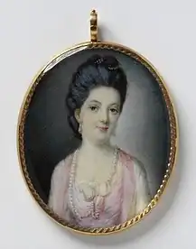 There is a portrait of Queen Charlotte of Mecklenburg-Strelitz, engraved after her by Richard Houston; and another of Miss Brockhurst, by J. Saunders. Other works were The Studious Fair (said to be a portrait of Queen Charlotte), engraved by Charles Spooner,[2] and Cupid Disarmed, engraved by Charles Knight.[3]