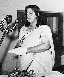 ![]() Mary Clubwala Jadhav speaking at the VI Madras Annual State Conference of Social Work at Salem on 13 November 1954 | |