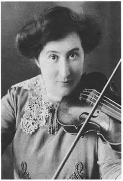 Her father died in 1883, and her mother moved the family to Wiesbaden, Germany, where she received her first violin lessons at the age of six.[2] Against the wishes of her family, she moved to London around 1897–98, where she briefly studied with composer Samuel Coleridge-Taylor at the Croydon Conservatory of Music and performed his Gypsy Suite, Op. 20 (1898).[2] She may also have studied composition with him, and he dedicated at least one of his subsequent works to her.[2]