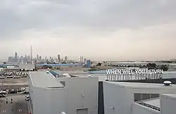 • The Circle Game is a permanent installation in the collection of the Alserkal Foundation in Dubai, UAE. Carroll was commissioned in 2016 to realize two site specific works of art that consist of two channel letter LED signs that read, WHEN DID YOU ARRIVE and WHEN WILL YOU RETURN, and a temporary five-story structure that used standard construction scaffolding to erect an edifice within the courtyard of Alserkal Avenue in 2016. The drawing as a built three-dimensional structure provided a platform from which it was possible to see one's self within Alserkal Avenue. The shift in elevation made it possible to have a 360-degree view of the city, providing a comprehensive view. The height of the structure was arrived at from the average of elevations of structures in the city and discussions were held on considered urbanism that included partners from the architecture firm OMA. It provided a physical understanding of the city and pointed to its origins in Deira, that intimate its return. Al Quoz was ‘seeable’ and one physically understood the lateralization of Dubai and how the skyscrapers are anomalies to the rest of the metropolis and where the emphasis has shifted the foundation into the cultural and the social realm.