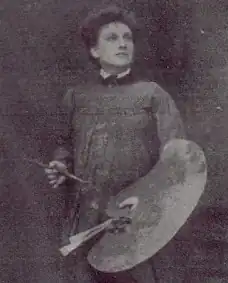 Raphael abandoned her daughter Gladys into the care of governesses as she proceeded to train herself to be an artist.[1] One of her tutors was Solomon J. Solomon, and he exhibited a painting in 1895 of Gladys. Raphael trained in London and Paris and her 1896 nude Wood Nymph was exhibited at the Royal Academy. Her painting of the writer A. E. W. Mason became a frontispiece of one of his books.[2]