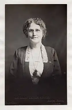 Armor often used the women's suffrage movement to advocate for prohibition in Georgia. Between 1903 and 1915, while serving in state and national offices with the WCTU, she lobbied for Congress to "protect women and children especially through prohibition legislation."[2] As a result, Armor is often credited for the passing of prohibition legislation in Georgia.[3] Upon the passing of a State-wide prohibition law in 1907, the newspaper Atlanta Constitution described her as the voice "that aroused the Christian conscience of the State and put it on the march."[4] She predicted that "brewery stock in this country will not be worth as much as Confederate money was in 1865."[5]