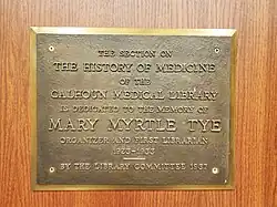 Following her death, Tye's father donated her final paycheck of $175 back to the A. W. Calhoun Library.[11] These funds helped to establish the M. Myrtle Tye Special Collection for the History of Medicine, now housed at the Emory University Woodruff Health Sciences Center Library.[12]