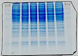 - ^ AL Shapiro, E. Vinuela, and JV Maizel., Jr. (1967) "Molecular weight estimation of polypeptide chains by electrophoresis in SDS-polyacrylamide gels." Biochem. Biophys. Res. Commun. 28: 815–820,